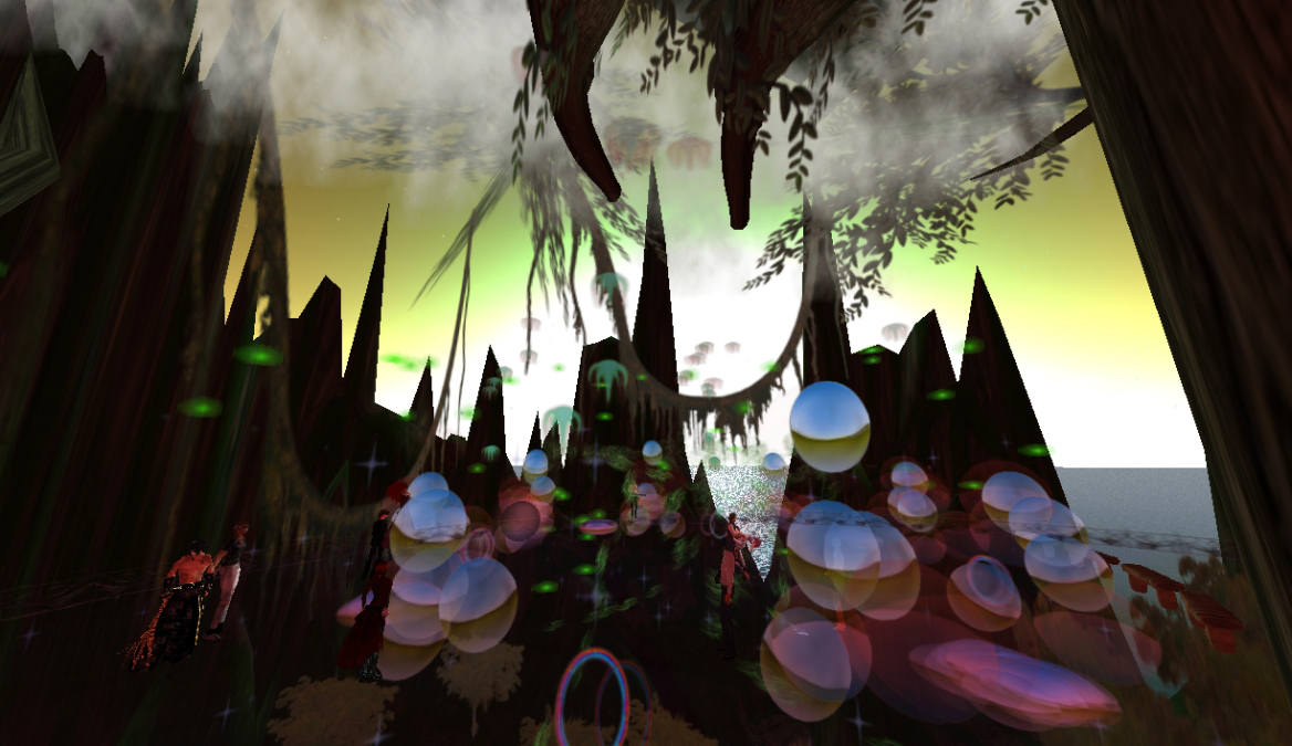 The Mother Stage is in the Na'vi Rainforest at Bliss. It is high up in a giant tree and a wonderful setting for electronic music with a particle show. Torben advised us to set the light to midnight, and in addition I used the sunset setting to get some of these pictures.